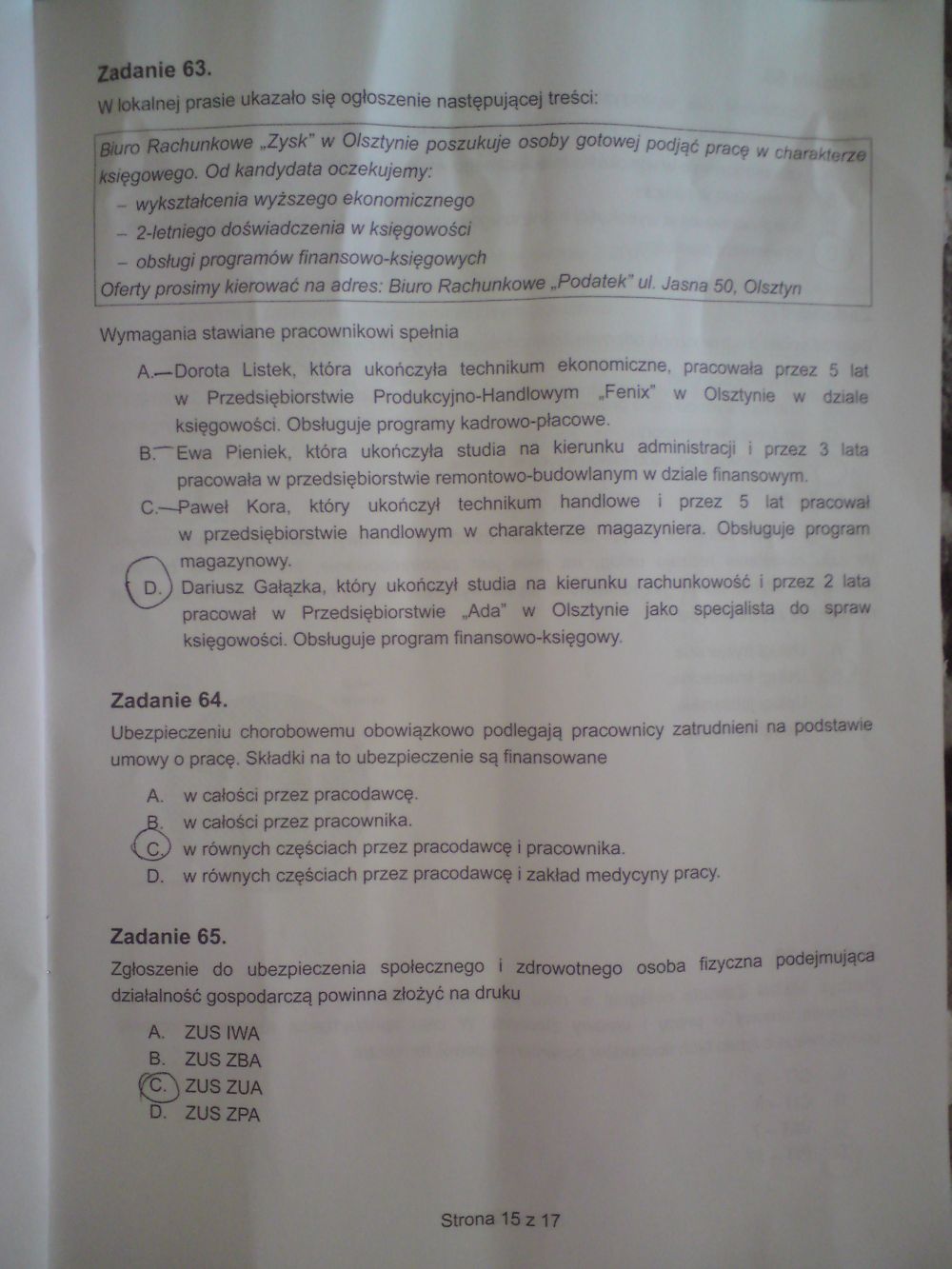 jumaja pisze:Była do przejścia choc niektóre pytania są źle skonstruowane moim zdaniem, np 10. Przecież rodzaj porażenia zalezy jeszcze od wysokości urazu rdzenia, prawda? A tam nic, ani słowa o tym